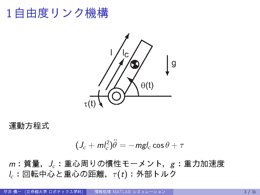 | 常微分方程式の標準形とプログラミング,1リンク機構の運動方程式,可視化