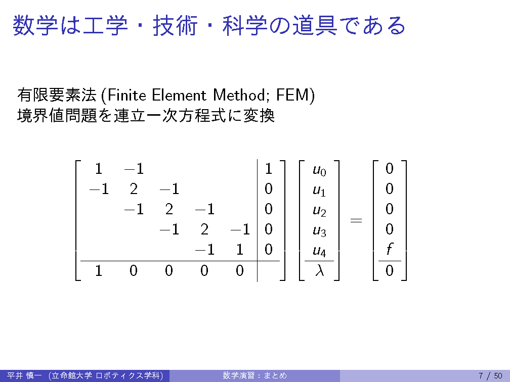 | 6th | 11/ 3 | Calculus of vectors and matrices: linear equation, LU decomposition |